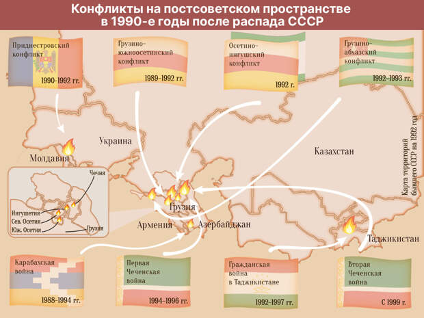 В результате вопрос о границах был ключевым в конфликте между Арменией и Азербайджаном за Нагорный Карабах, между Грузией и Абхазией и многих других. А в Таджикистане после развала СССР началась полноценная гражданская война.
