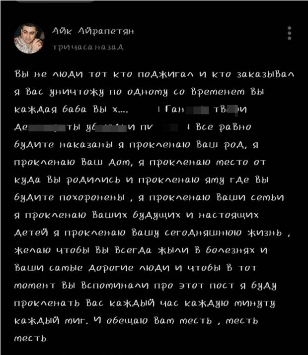 Однако последней каплей в терпении людей оказался пост Айрапетяна, в котором он открытым текстом оскорбил русских.