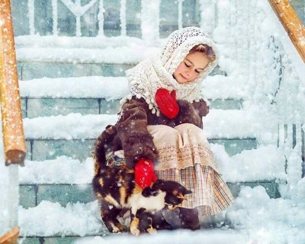 Девочка была как кукла. Большие синие глаза, пушистые густые темные ресницы. Из-под меховой шапки выбивались золотистые локоны. Шубка белая, со снежинками. И муфточка. Словно приоткрылось окошечко в прошлый век. Очередь невольно залюбовалась, когда она вбежала внутрь.